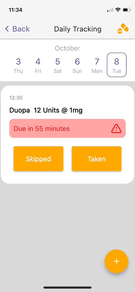 The app includes an extensive list of Parkinson’s medication for you to choose from, but you have to scroll through the whole list to find each medicine you want to add.