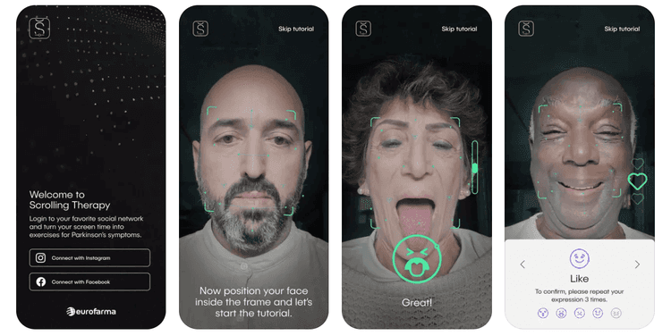 An app that makes facial therapy exercises more engaging by turning them into a way to control your social media feeds.